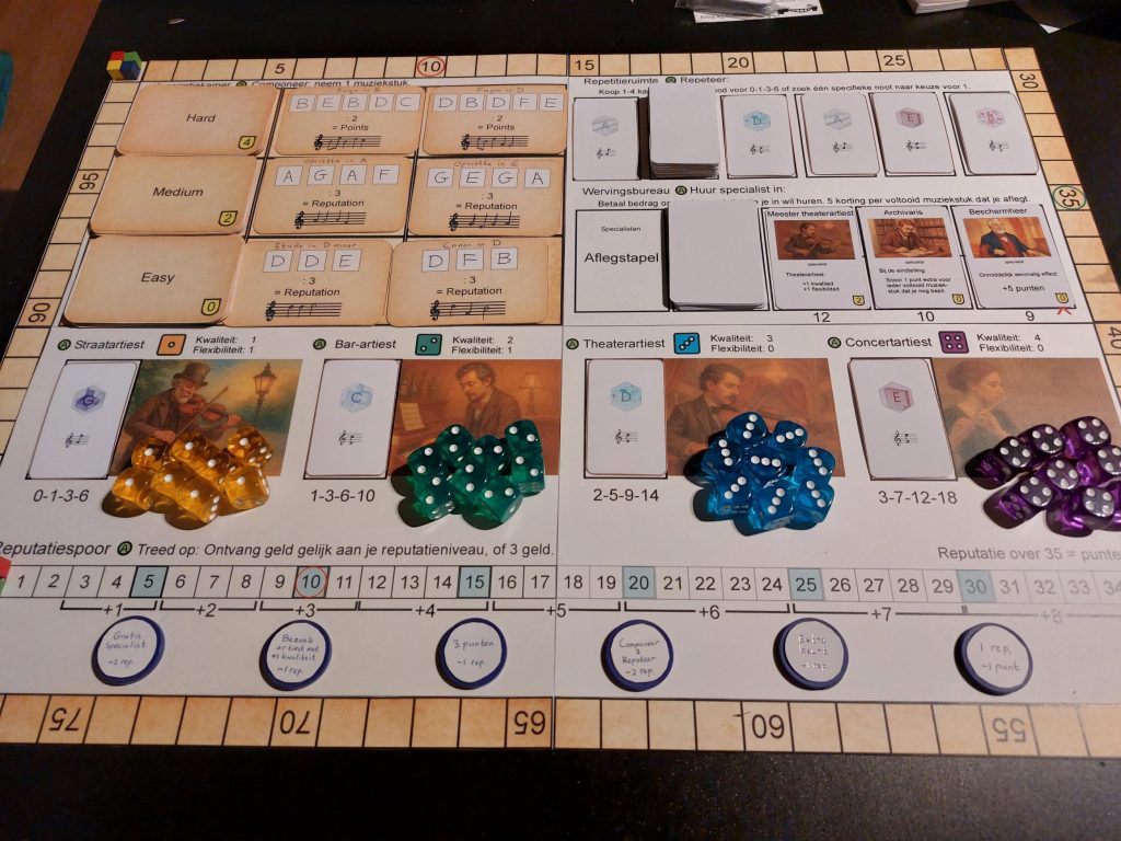In dit spel kruip je in de huid van een componist. Jouw zelfbedachte muziekstukken laat je inspelen door verschillende artiesten: hoe beter en duurder de artiest, hoe hoger de kwaliteit van de noten én hoe meer reputatie je opbouwt. Met een hoge reputatie verdien je vervolgens meer geld met optredens — geld dat je weer slim inzet om efficiënter te werken of specialisten in te huren die unieke voordelen bieden. Beheer je acties zo scherp mogelijk en scoor zo veel mogelijk prestigepunten. Wie aan het einde de meeste punten heeft, mag zich de ultieme meester-componist noemen!